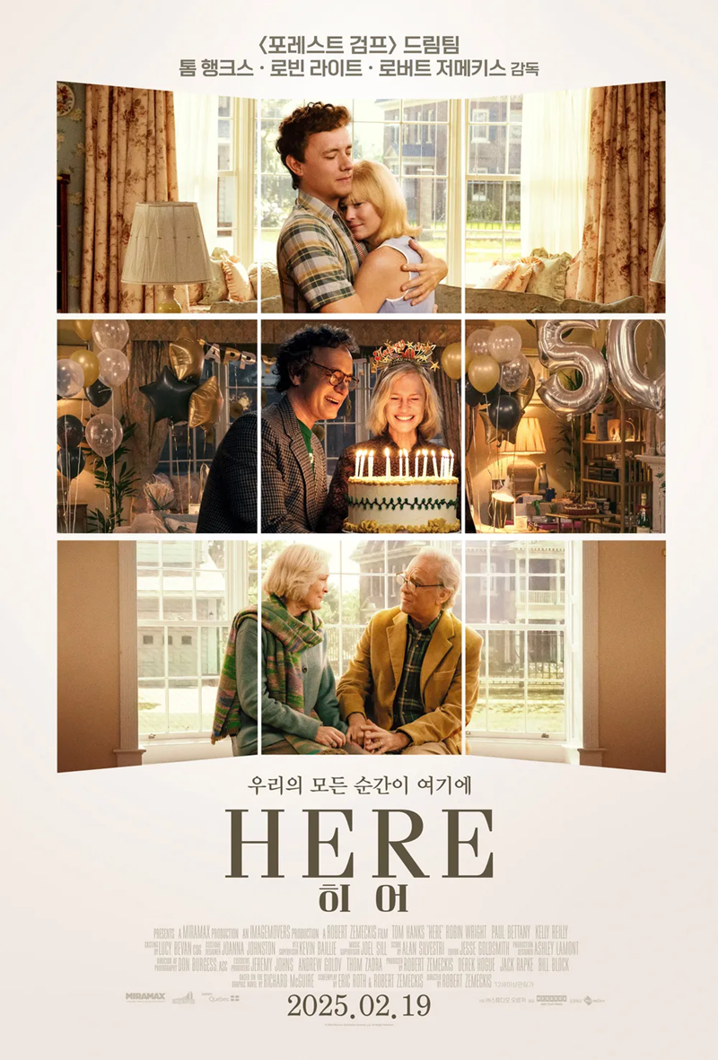 로버트 저메키스 감독은 30년 전 〈포레스트 검프〉에서 한 사람의 인생을 통해 20세기 미국의 역사를 그려냈다면, 이번 영화에서는 한 장소를 통해 인류의 역사 전체를 담아내고자 했습니다. 영화 속 시간적 배경은 공룡 시대부터 2020년대까지 이어지지만, 주요 이야기는 1940년대부터 2020년대 사이 미국 중산층 가정의 모습을 따라갑니다. 제2차 세계대전이 끝난 직후 집을 산 알의 가족, 1960년대 베트남전쟁 시기를 살았던 리처드, 그리고 2020년 코로나 팬데믹을 겪는 현대의 가족까지, 각 시대마다 사람들이 겪었던 역사적 사건들이 자연스럽게 스며들어 있습니다. 저메키스 감독은 이를 통해 "시대는 변해도 사람들이 한 장소에서 느끼는 감정, 즉 사랑하고 꿈꾸고 좌절하고 화해하는 모습은 변하지 않는다"는 메시지를 전하고자 했습니다. 감독은 이 영화에서 'Metaphysic Live'라는 최신 AI 디에이징 기술을 활용해 톰 행크스와 로빈 라이트를 10대 청소년부터 80대 노인까지 자연스럽게 변화시킵니다. 이는 단순히 기술을 뽐내기 위한 것이 아니라, 한 장소에서 평생을 살아간 사람들의 시간을 생생하게 보여주기 위한 장치입니다.